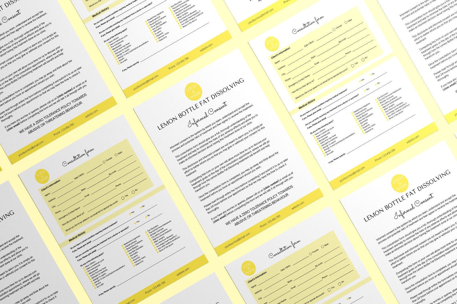 Organising client information for fat-dissolving treatments can be much work, whether operating in a clinic or as a freelancer. But worry no more! I’ve already crafted the perfect solution for you with our Lemon Bottle Fat Dissolving Forms. These forms will save you considerable time, hassle, and money!