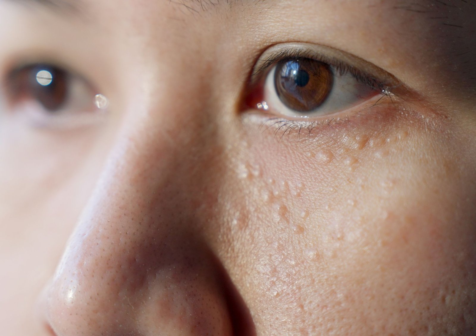 Tiny white or yellow cysts that sit under the skin, usually around the eyes or cheeks. They can't be squeezed out at home, so removal in a salon is fast and effective with the appropriate treatment.